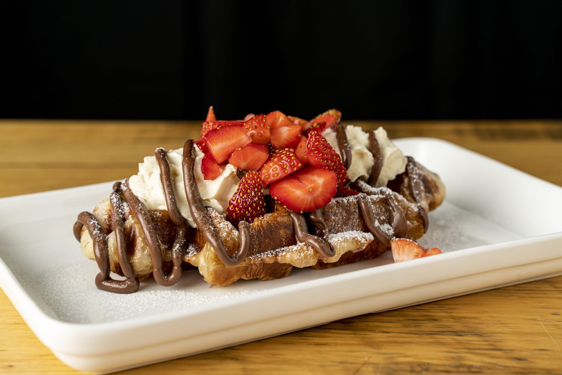 Indulge in the expertly crafted Strawberry Banana with Nutella waffle, combining the natural sweetness of ripe strawberries and bananas with the rich, creamy texture of Nutella. This harmonious blend offers a balanced flavor profile that elevates your waffle experience, perfect for those seeking a sophisticated yet comforting treat.